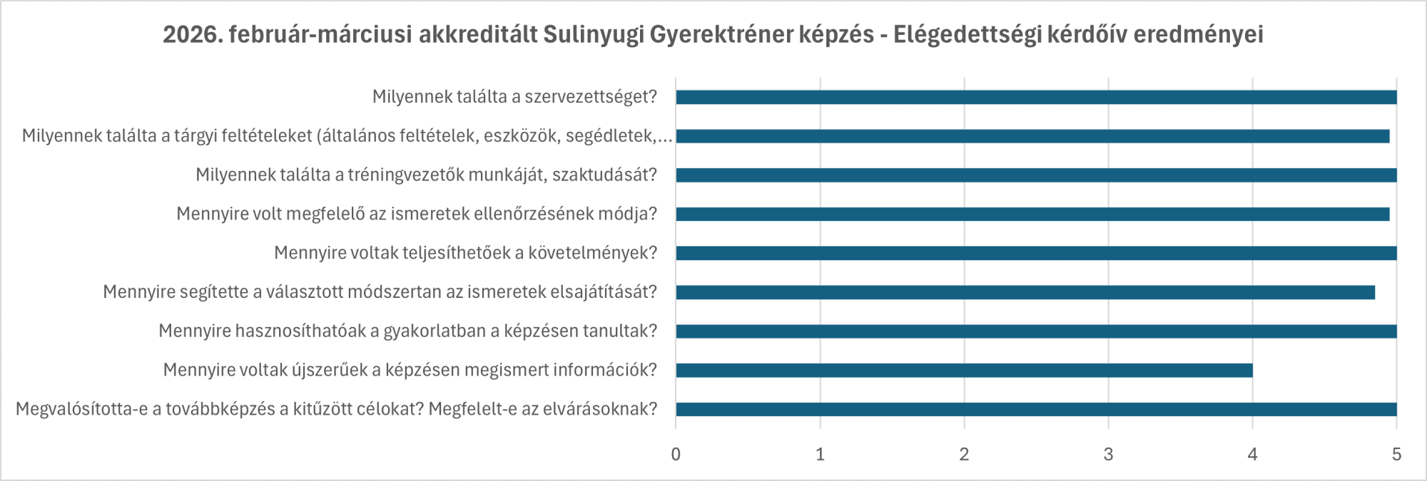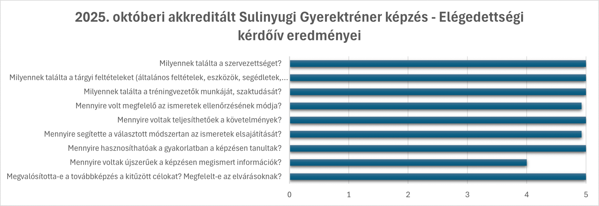 Lezajlott Sulinyugi Gyerektréner képzés elégedettségi kérdőívének eredményei