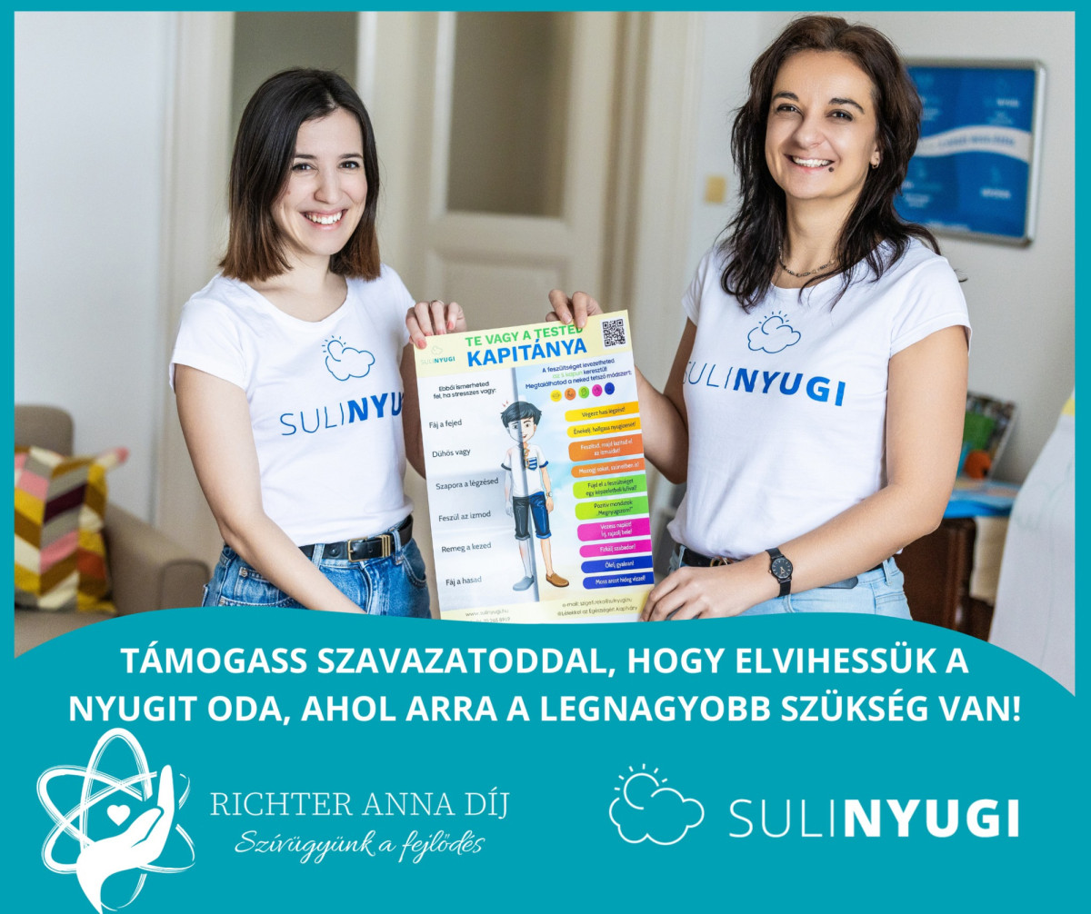 Ha te is azt gondolod, hogy a gyerekek mentális egészsége nem egy kiváltság, hanem egy alap, akkor szavazz a Nyugit a Suliba projektünkre a Richter Anna Díjon!
