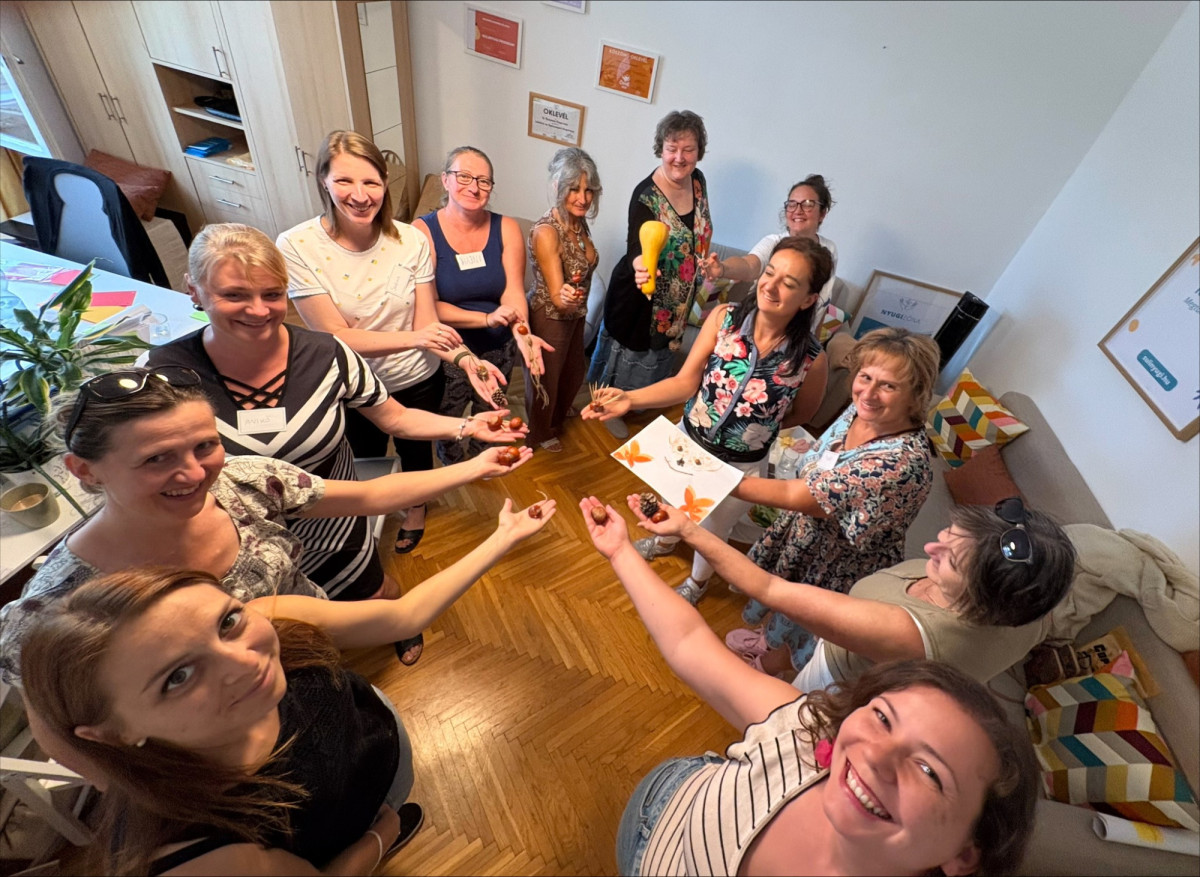 A megérkező körben visszanyúltunk a gyermeki, játékos, kreatív énünkhöz: gesztenyéből és őszi termésekből alkottunk. Ti mikor készítettetek utoljára gesztenyefigurát?